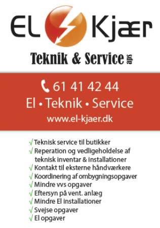 El-Kjær, Teknik & Service Aps kan med 30 års erfaring tilbyde sin ekspertise på flg. områder